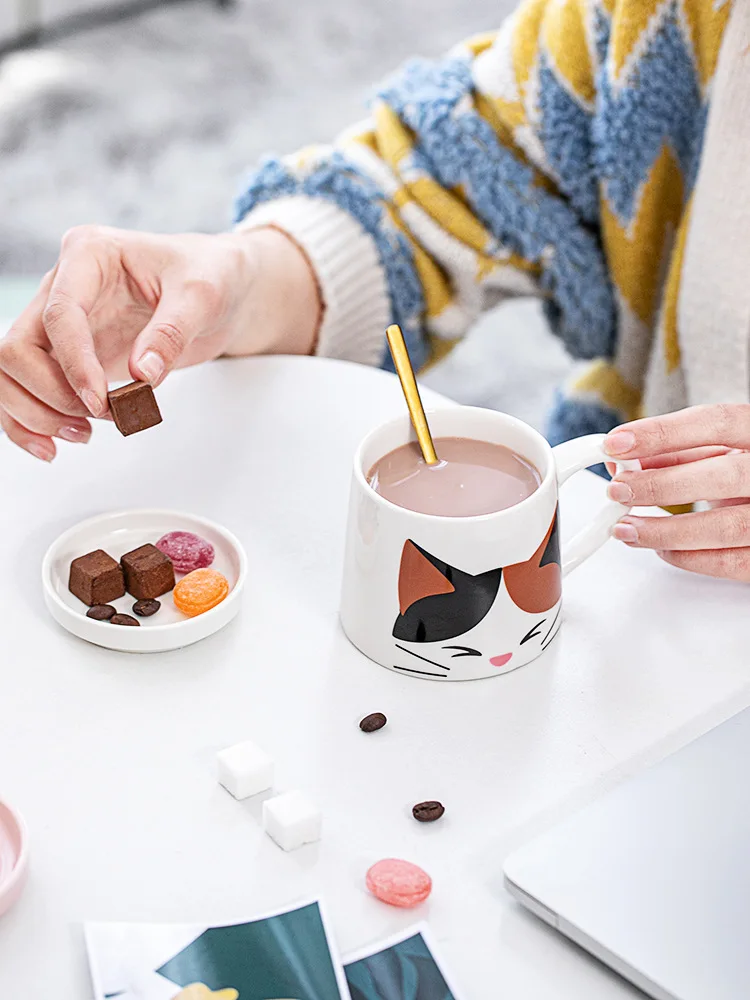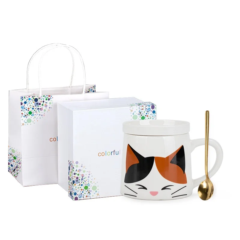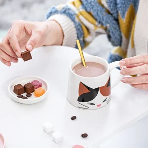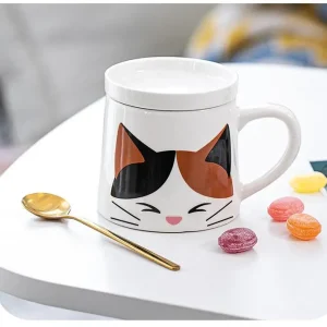 Caneca de Cerâmica com Colher e Tampa – 300 ml